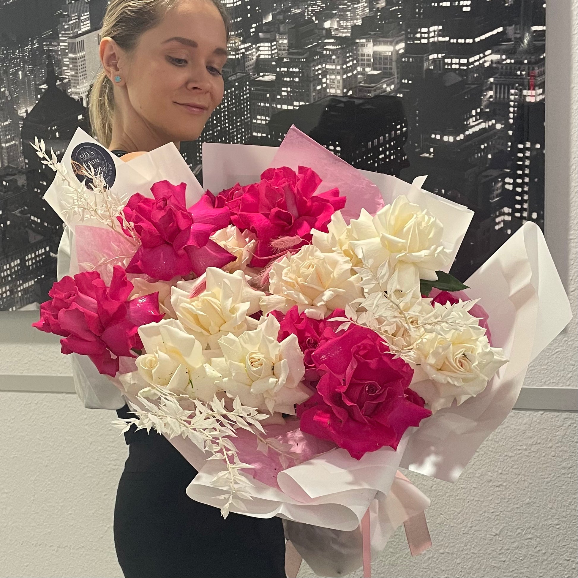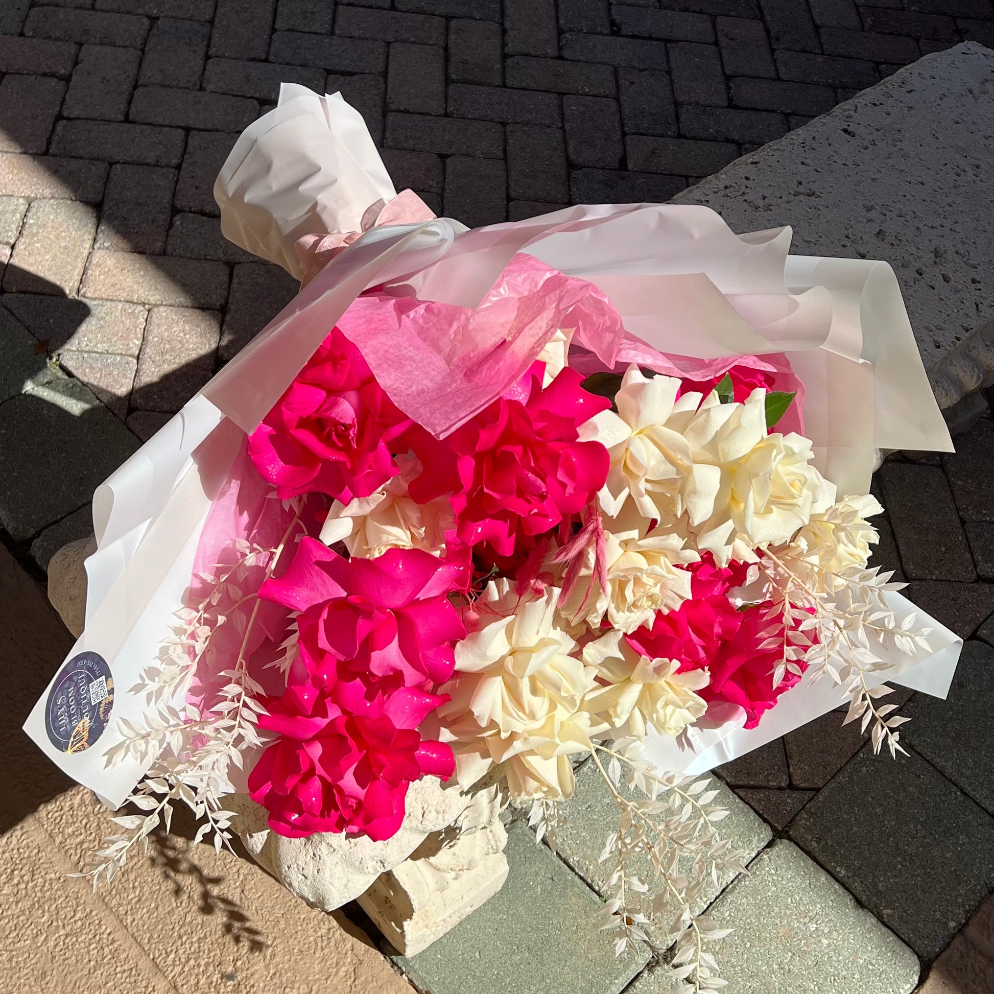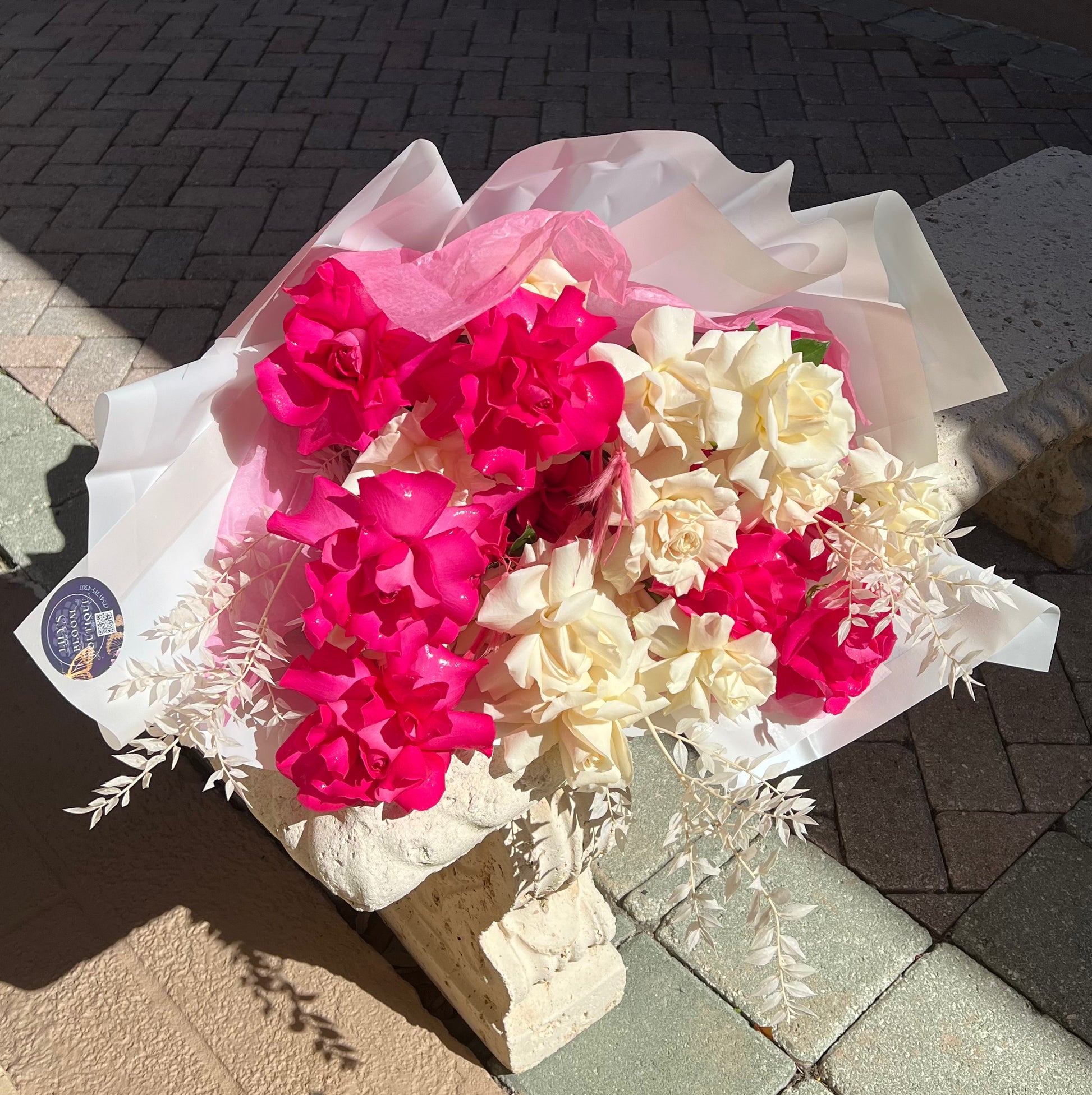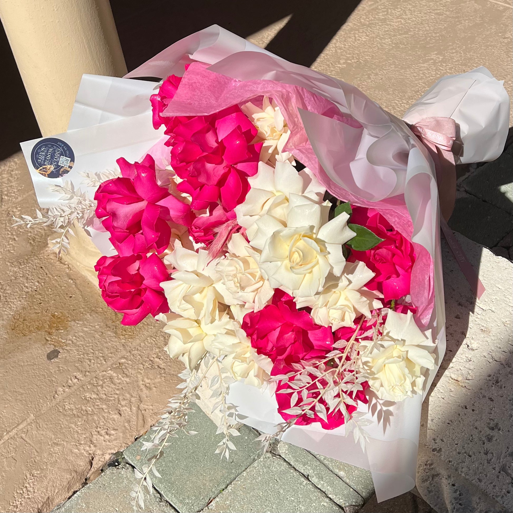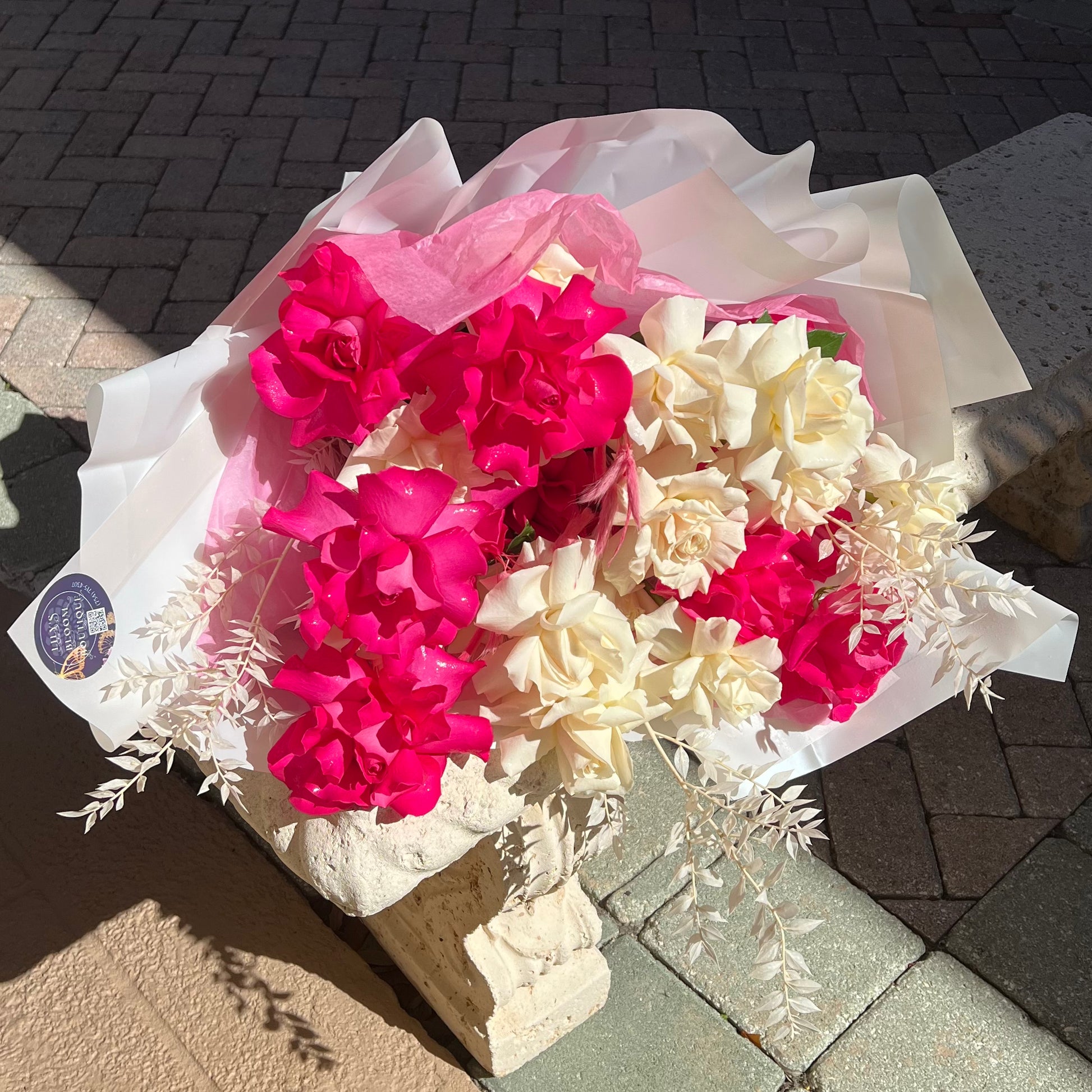 Prepare to elicit a resounding 'WOW' with our stunning Valentine's Day gift from Lily's Bloom Boutique. This exquisite arrangement boasts a perfect harmony of colors that will leave her breathless. Featuring two dozen premium hot pink roses intertwined with pristine white roses, each bloom unfurls with graceful elegance and releases a captivating fragrance reminiscent of a fine perfume. It's more than just a bouquet—it's a sensory experience that embodies the essence of romance. Elevate your Valentine's Day flower delivery in Boca Raton with this beautiful expression of love from Lily's Bloom Boutique.