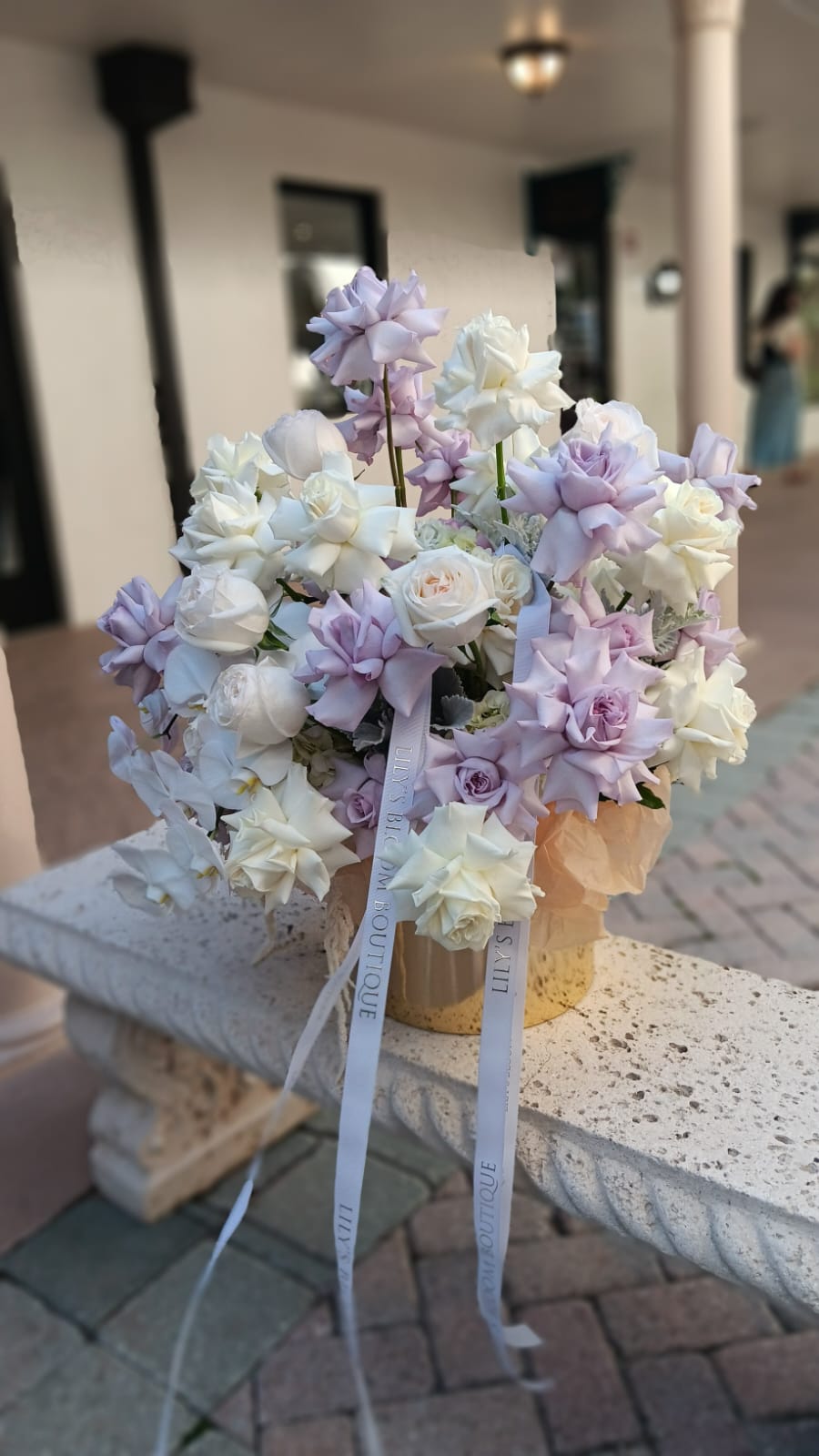 Everyone would like to set the table in brilliant style! We are here! Our new Thanksgiving centerpiece captures the rich beauty of autumn in every detail. Pops of lavender roses, crème roses and orchids mix with white. This masterpiece creates a warm and cozy ambiance for every gathering.