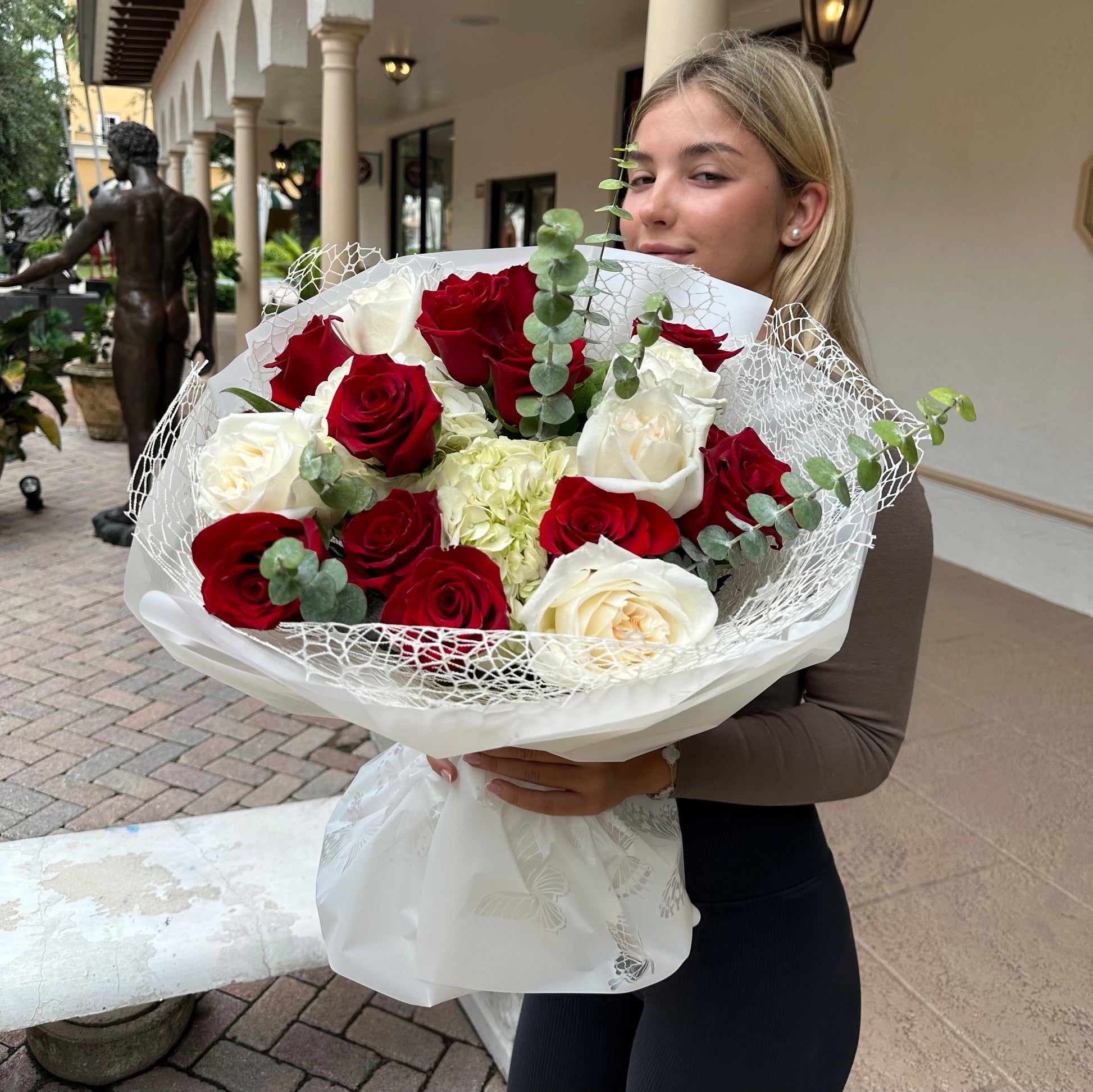 Beautiful Red and White roses Mix is perfect combination of colors that suits for birthdays, Christmas or as Just Because flowers!