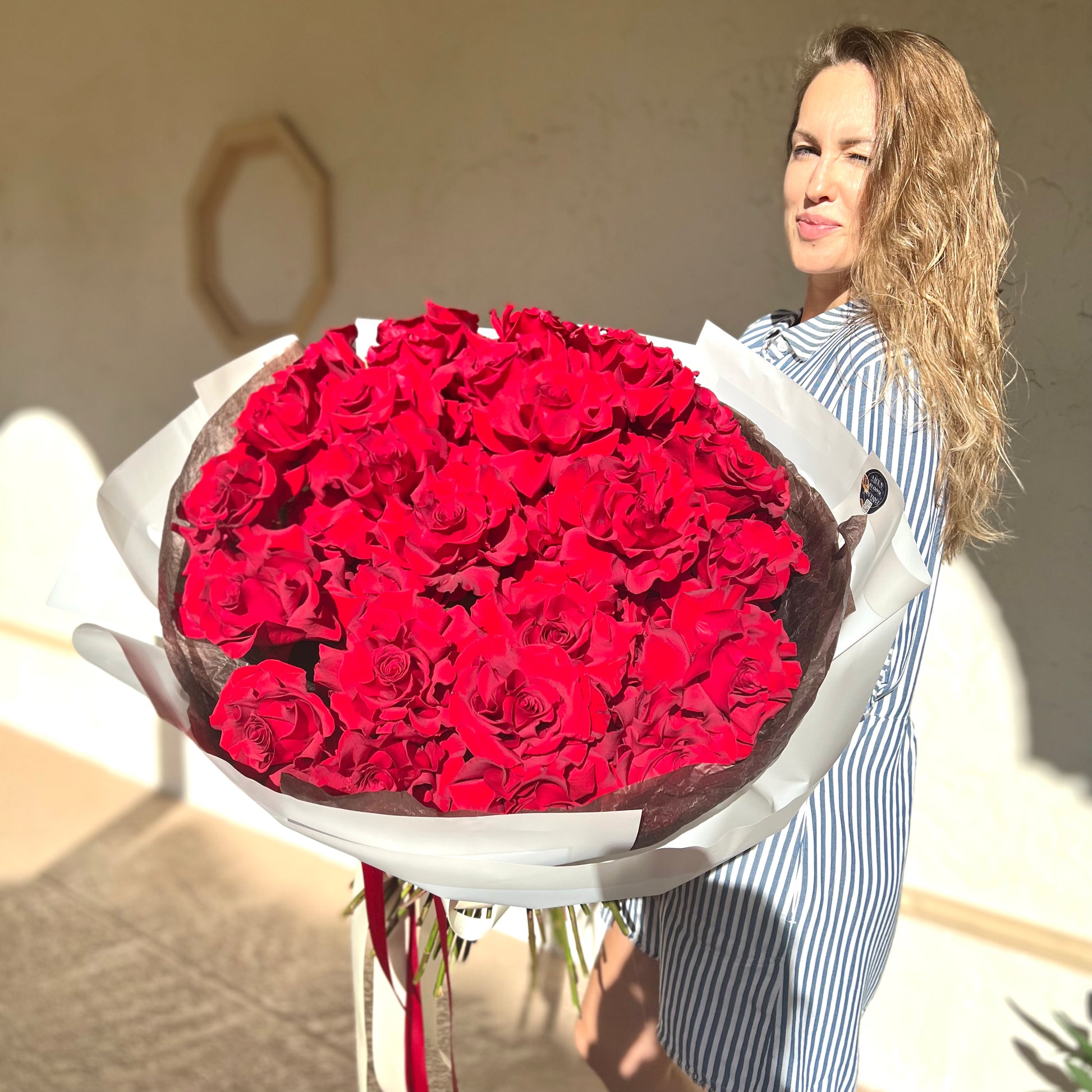 Beautiful Premium Opened Red Roses Bouquet with Premium 80cm flowers will leave serious impression! If you want to show an old-school and heartwarming romantic gesture to someone, these best and fresh handpicked red roses are perfect for you.